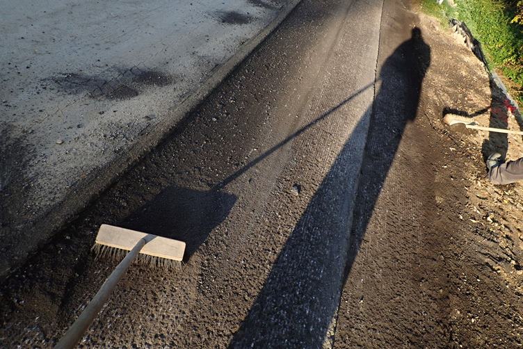 Ráno jedu pro beton, pak frézujeme asfalt, Tonda boural, na hřadle, přijela Káč a má novou kérku