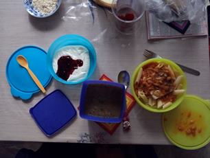 Mám doma maroda - ranní mlha nad Prahou - pracovní snídaňo-svačina v Cross Café - oběd z jídelny - zaseknutý mobil - připravuji e-mailing - cestou ze školy - bude pudink a já zkouším tohle focení pojmout trochu "nově" :-) - ještě umýt nádobí