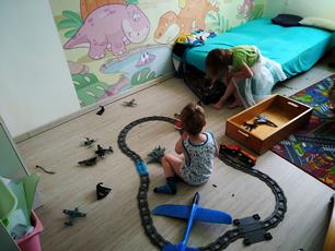 Letadla dostávají pěkně na frak, ale to se dalo čekat. Dopoledne jedu konečně přezout auto, děti jsou u rodičů, kam se pak vrátím i já a protože je Vlaďka celou sobotu na team buildingu a dětem se u babičky s dědou líbí, jsme tam skoro celý den. Doma si pak už jen chvilku pohrajeme s letadly a Albi knížkou.