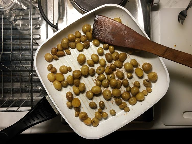 Do práce nastavit mlýnek, na kontrolu k doktorovi, zpátky do práce a konečně snídaně. Vasky jsou prima, jen mi trochu rozkousaly nohy. Ale to se zlepší. Nakupování v hračkářství pro dospělé ;D Výlet za Pájou na Letnou na další cupping. A domů. Nevím ani jak, ale podařilo se mi rozmnožit granátový jablíčka, takže mám zase o jedno víc. Pája pracuje na fotkách a já vyrážím do Alberta nakoupit a uvařit něco na zítra. K tomu domácí brambůrky co jsem kopala v neděli na pořádným sluníčku aneb důvod, proč nemůžu spát na zádech...