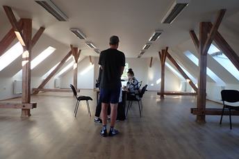 Testujeme, upadl mi vejfuk, naložím roury, výtok už se rýšuje, jedu pro drť, přišel místní bulvár, jedu pro Liduš, našel jsem fotku obce Polka- tam, kde je šipka děláme překop, jinak je vše srovnáno se zemí, grilujeme