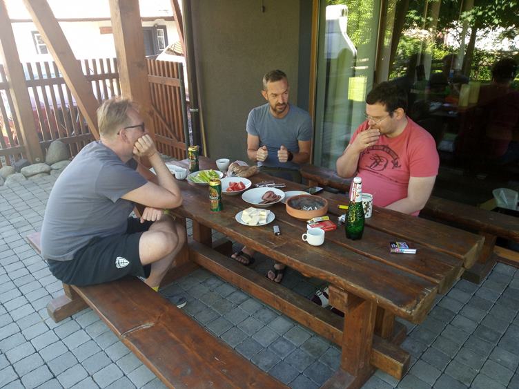 Po návrate z chaty sme zablahoželali Samkovi k narodeninám. Dominik mu kúpil čokoládu. Potom sme šli na pizzu do Kazačku. Večer som sa so Samkom hral. Dominik mal za úlohu nakresliť osnovu nejakého príbehu. Opísal dnešný deň.