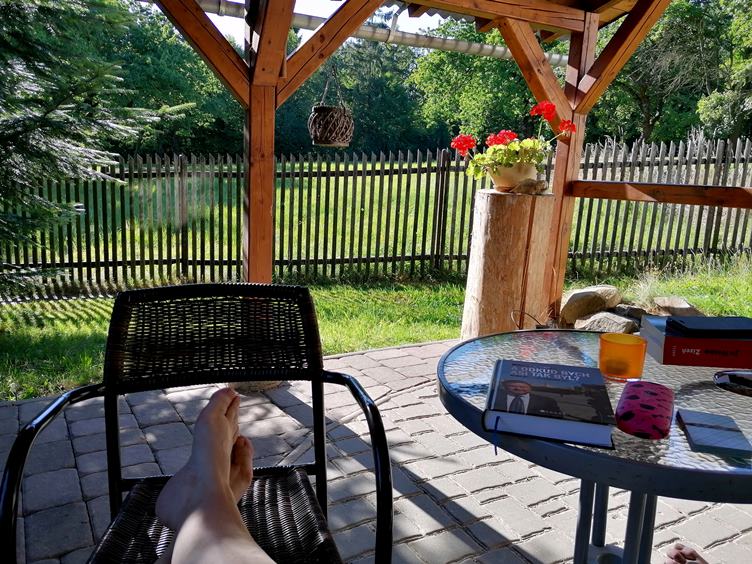 1- Zbyšek se učí nový repertoár Niezapominajek... 2- Cestou do Restaurace Myslivna v Klimkovicích... 3- Vynikající obědy za příznivé ceny a pivo s pořádnou čepicí... Milá a pozorná obsluha..., aniž bychom chtěli dostali jsme omáčku navíc... :-D 4- zašli jsme omrknout včera večer slavnostně otevřené zámecké nádvoří s jeho novou dominantou - studnou ze 16. století. 5- v areálu lázní Priessnitzovy venkovní koupele... 6- koupací jezírko v zahradě s ledovou vodou... 7- pohled na ubytování ze zahrady... 8- pohodička... 9- a jediná srnka, kterou se mi podařilo vyfotit, i když příležitostí bylo dost, buď jsem neměla po ruce mobil a nebo byly moc rychlé... Téhle se asi naštěstí uprostřed louky zachtělo... :-D