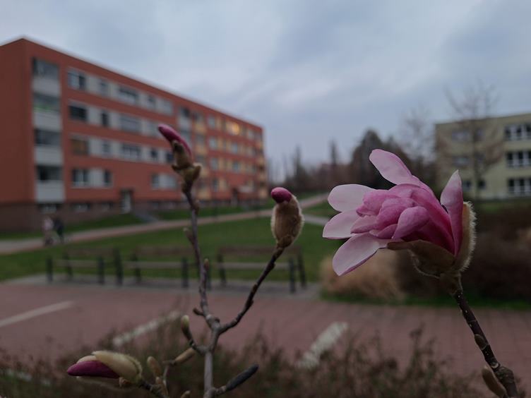 Ramón prohání holuby, jsou zpitomělí láskou..Magnólie už začínají kvést. Prořezávání keřů a stromů na sídlišti vrcholí. A ožilo všecko, beruška zdobí mou 4.fotku.. Narcisky už se rozloučily.. Ramónek přihlíží chystání léků, je to asistent.. Moje fialky, mám je moc ráda. Nemám ráda vandaly.. A magnólie večerní, snad už nebude mrznout...