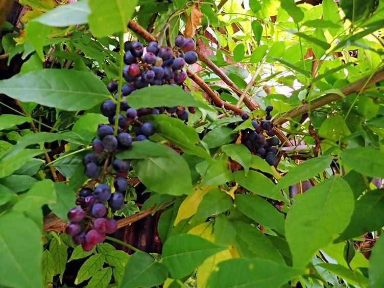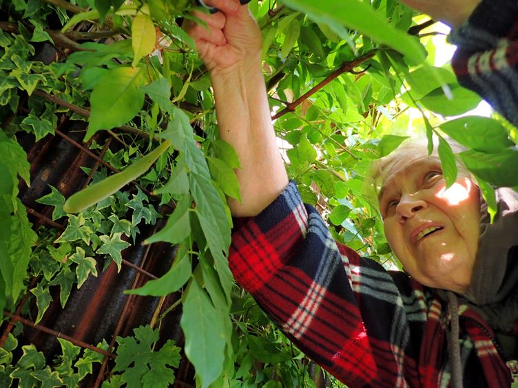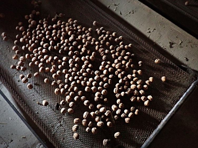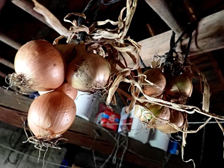 Ráno na cestě... Cibule a ořechy na hůře, kde pěkně vysychají... Také polínka z nedávno poražených slivoní vysychají... Stříhání vinných hroznů... Dozrávající rajčátka... Polévka... A život na zdi domu - asi Zlatohlávek zlatý...