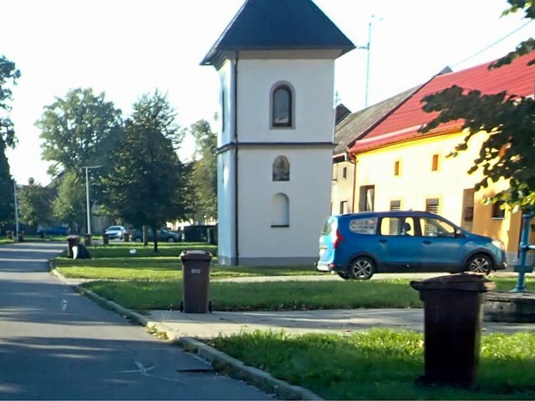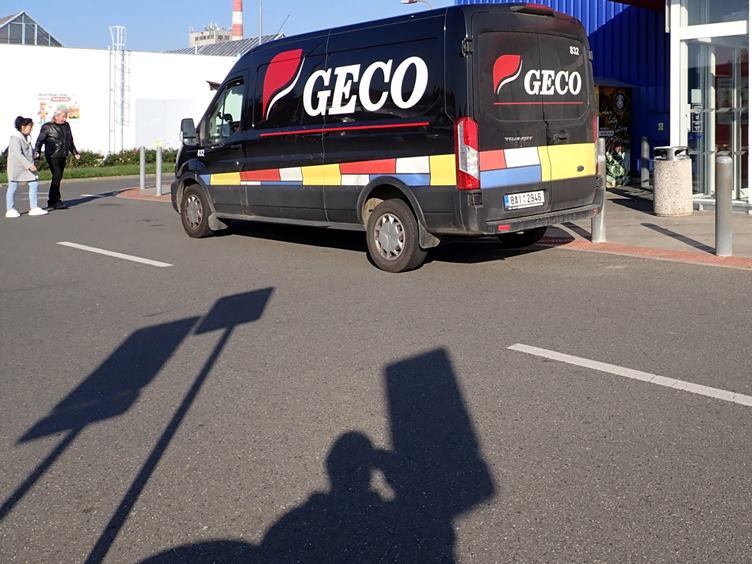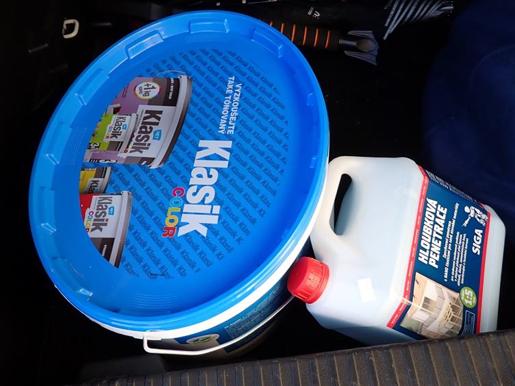 Vlajka na obecním úřadě - zanedlouho začnou volby... Popelnice na biodpoad ve Všetulích... Mondrianovsky vymalovaná dodávka před Tescem... Když jsme obchod opouštěli, potkali jsme Pepíka... V prodejně Barvy laky jsme nakoupili potřeby pro Rosťu, který k nám přijde malovat... Setkání s Dášou... Jedna voltaren tabletka na moje bolavá záda...