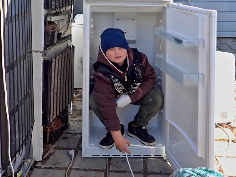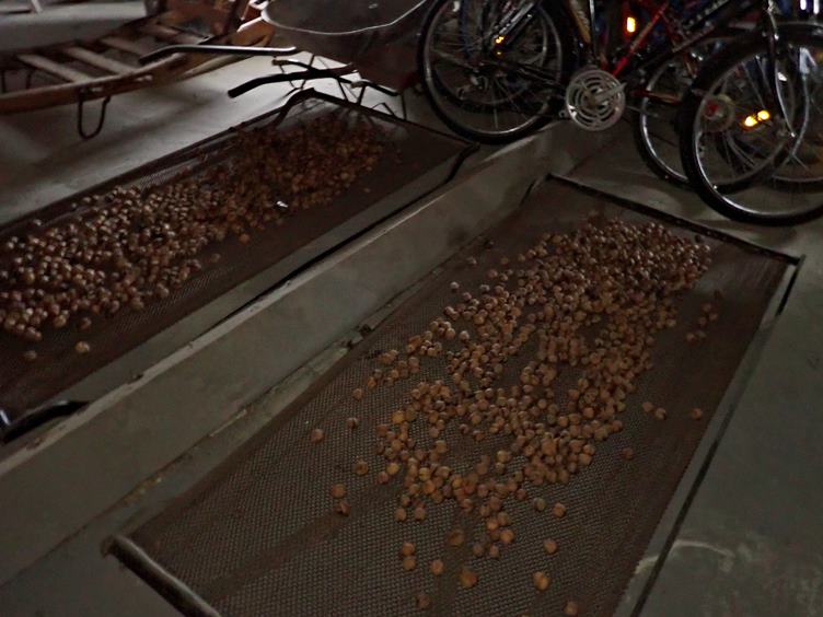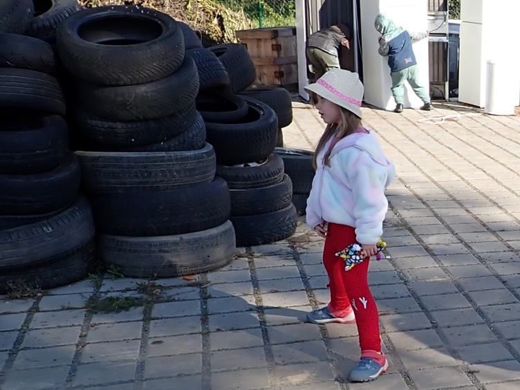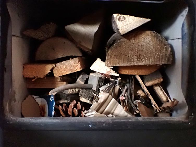 Kamna připravena na večer.... Linda na dlažbě... Ve sběrném dvoře, kam jsem odvezl odřezky starých parket, jsem natrefil na děti, které si tam hrály jak se na toto místo patří... Stančino políčko... Špaček pochutnávající si na našich hroznech... Opět doplnění ořechů na rošty.... A večer...