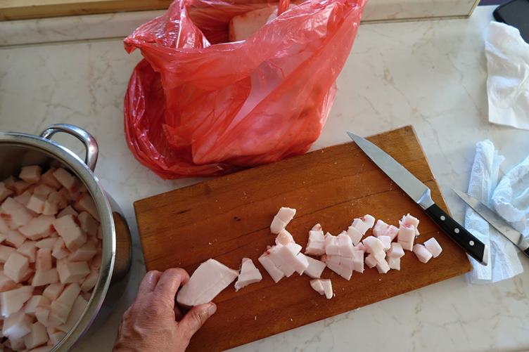 Dopoledne řeším umístění fotovoltaiky na střechu, na Ternu zmařená váha azačínáme s opravou střechy, odpoledne jedu do Lhoty dědovi nakrájet sádlo na škvarky a doma pohoda