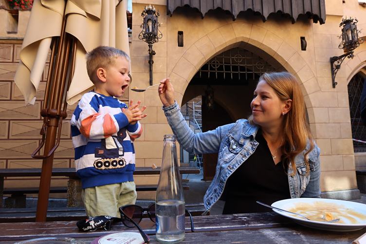 Cestou do Prahy se stavíme v Písku s dárkem, jdeme na náplavku, kde má Michalka stálek se svým novým produktem, večer pokec s Tobíkem :-)