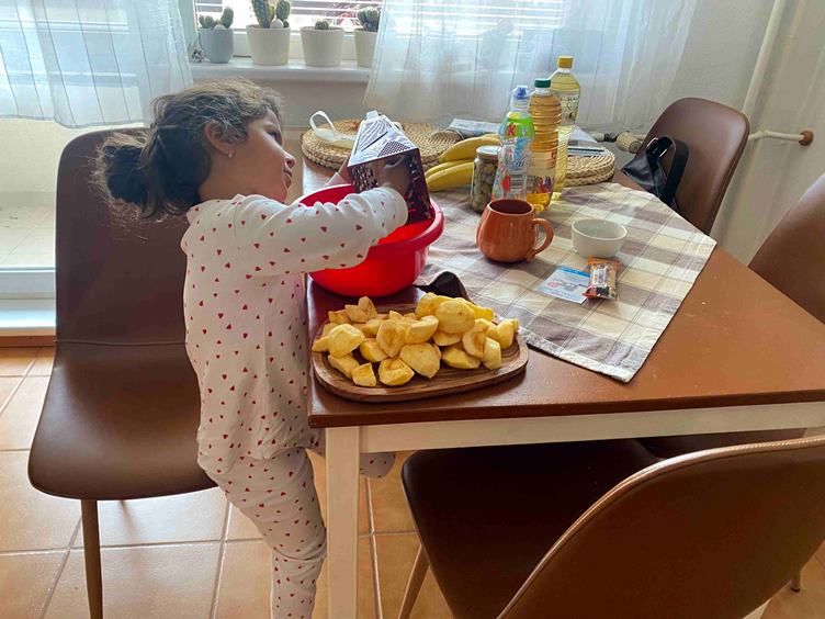 Aliya mi zakrýva oči - ešte vraj môžem spať * má tiež dyňový hrnček a je šťastná, že ho má * pomáha strúhať jablká na štrúdľu * sledujeme sýkorku * mám sa - učeše ma * v záhrade spravíme teplo a dáme si kávu * Aliya netrpezlivo čaká moju kamarátku * návšteva je tu - je teplo a všetko nachystané, môžeme ich nechať oddychovať * nočná cesta z chaty domov