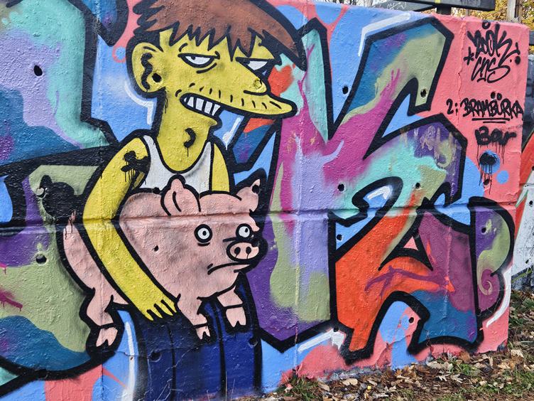 Pondělí 10.11.2025 Trolejbusem poránu. Jedu do práce. Staromák, Kancl. Pohlednice ze světa. Odpoledne jedu pro Bárta, mám chvíli čas, tak si fotím graffiti u školy Michael na Chodově. V podvečer se udělalo hezky.