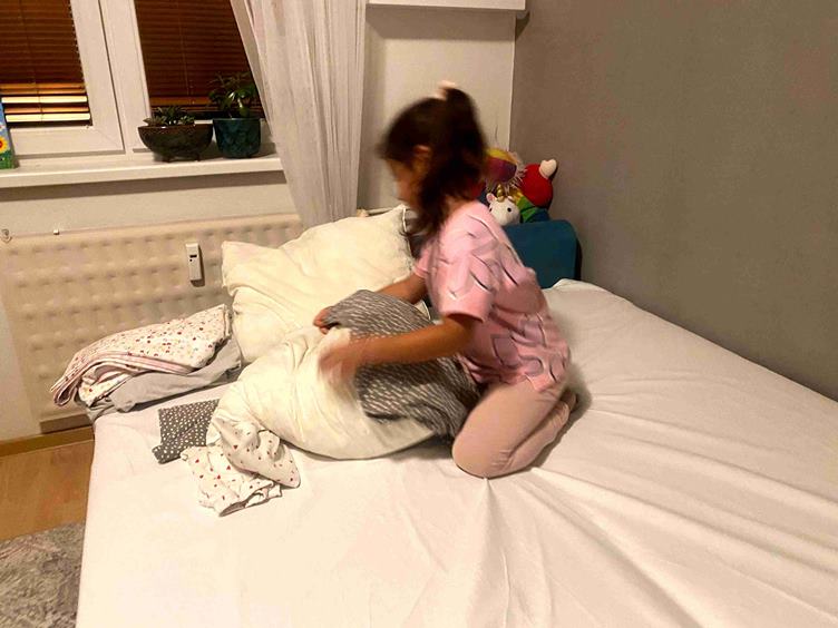 v knižnici sa zabýval kat * na mestský úrad * dostala som (od kamarátky) * toto žieňa je energia * na krúžku je svetielkovo * a doma tvorivo * pomáha mi pripraviť posteľ * potom si zahráme človeče (na dvoch panáčikov v domčeku - potom je to nuda) * a večerné rozprávkovo