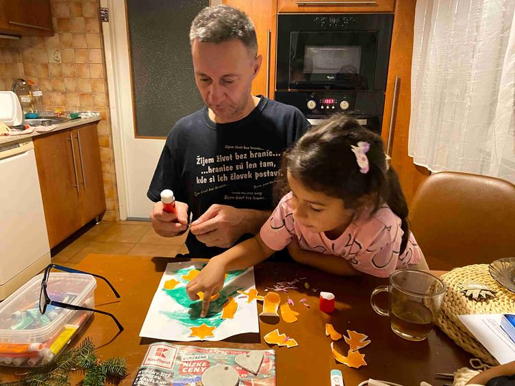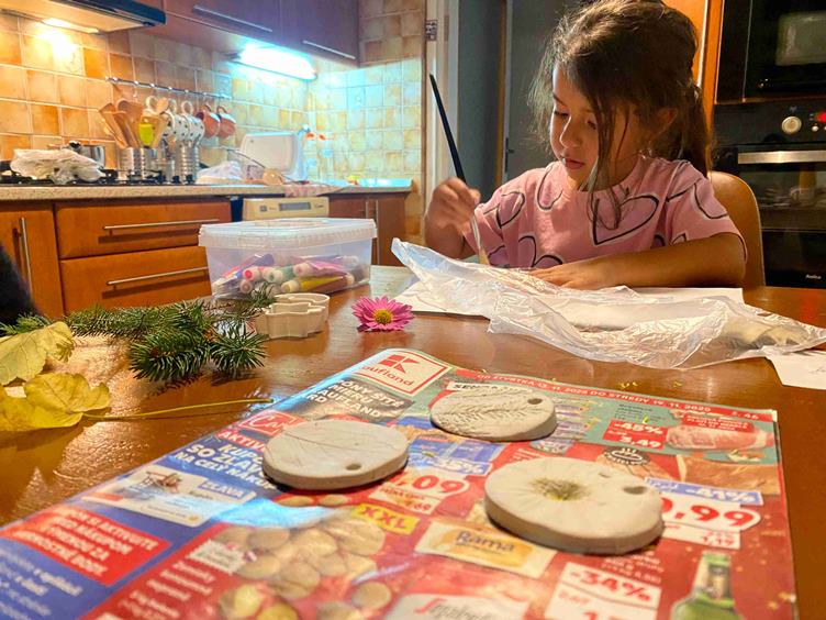 pripravujem na výzdobu - toto musím dokončiť * jeseň sa ešte bráni * áááách * doma tvoríme z modelovacej hliny * a potom farbíme * a robíme ozdôbky na namaľovaný stromček * a dede lepí tieto ozdôbky * je to pekné * nové nápady
