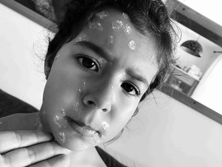 farebné raňajky * a potom natieranie * a snaha neškriabať pupáčiky * tvorenie * kto bodkovanejší? * polievka - krémová, výborná ale A nemá moc chuť jesť * bábiky ma zachránia od ďalšieho tvorenia * výmena s Rasťom - idem na nákup a na vychádzku * aj smerom k zámku