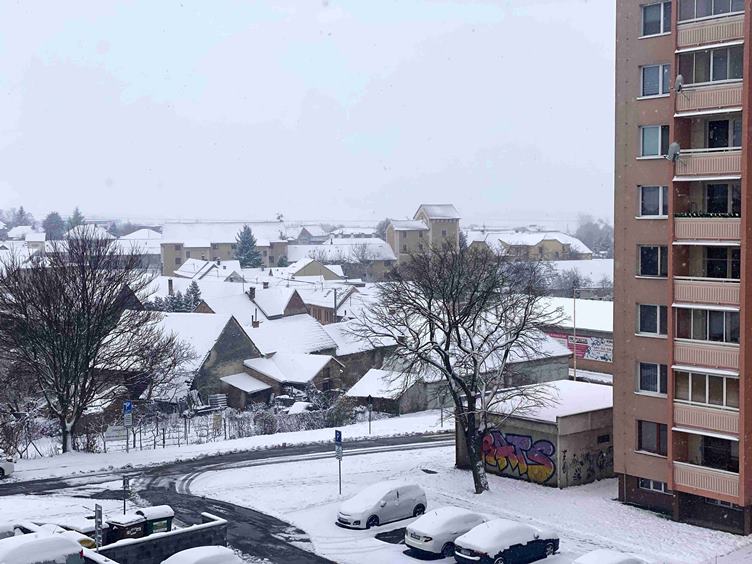 vonku je krásne bielo * A sa nechce fotiť - vraj je ako chlapec * zato A2 je pripravená * a ja som pripravená na fotovychádzku so starým sklom * wol * zimná krajina * biely mlyn * farebná sýpka * rýchla večera