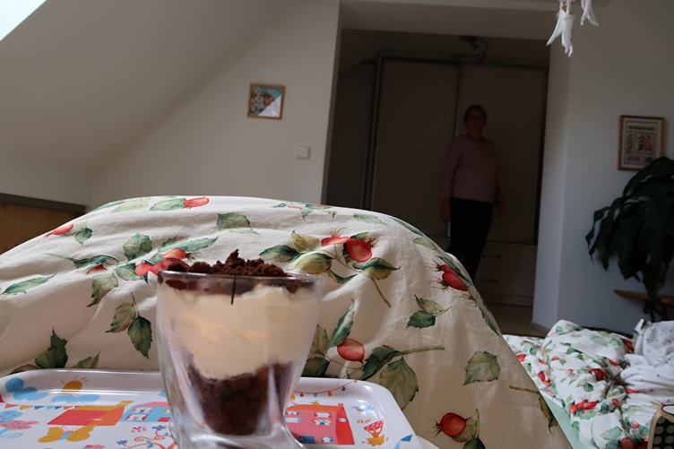 Chytil jsem nějakej morybundus, je mi blbě, tak se válím v posteli, večer Liduš přiveze Pepinu, aby mi v posteli nebylo smutno