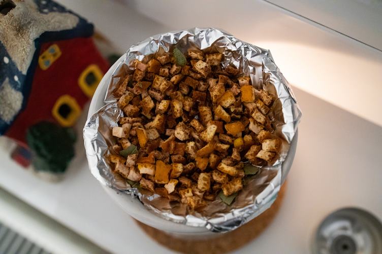V noci jsem dodělala citrónovou polevu a dnes už to vypadá krásně. Vrhám se na dohánění fotek do WOL a konečně se dostávám do reálného času. Mobil mi nabízí vzpomínky z loňského Punče... tak moc mi chybíte...! Udělala jsem si vlastní purpuru, která mi lépe voní. Zadělám na omáčku a něž se uvaří, trošku si zacvičím. Suším ponožky. Večer trávím lepením lineckého cukroví. Umýt a spát.