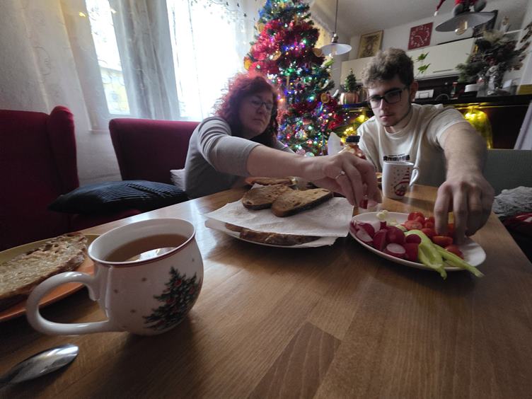 Prípravy pokračujú a snáď všetko klapne :) Danka má už dovolenku a Leo má poobednú, ja home office a Lívia prázdninuje, tak spoločné raňajky. Potom nákupy, pre nás a j pre Fifi (škrečok) a údim aj slaninu a Danka ešte pečie. Dovidenia, rád som vás videl...