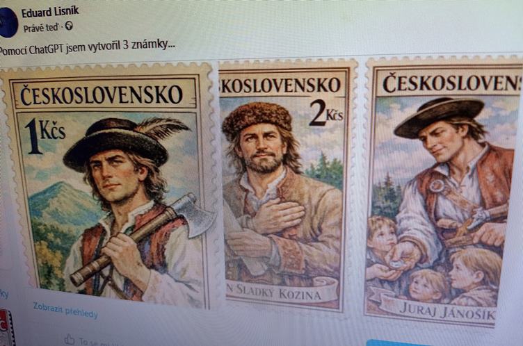 Čekám na tramvaj. Na zastávce v Hrušově po práci. Odpoledne. Večer. Hraji. Vážení. Předpověď počasí netěší. Tvorbu "a lá Daniken" psali u nás v Česku Ivo Wiesner, Arnošt Vašíček a také Ludvík Souček, nad řádky jeho knihy právě jsem. Udělal jsem pomocí Chat GPT poštovní známky s Ondrášem z Janovic s kouzelnou valaškou, Janem Sladkým Kozinou s pergamenem a rukou na srdci a Jánošíkem dávajícímu stříbrný peníz chudým dětem.