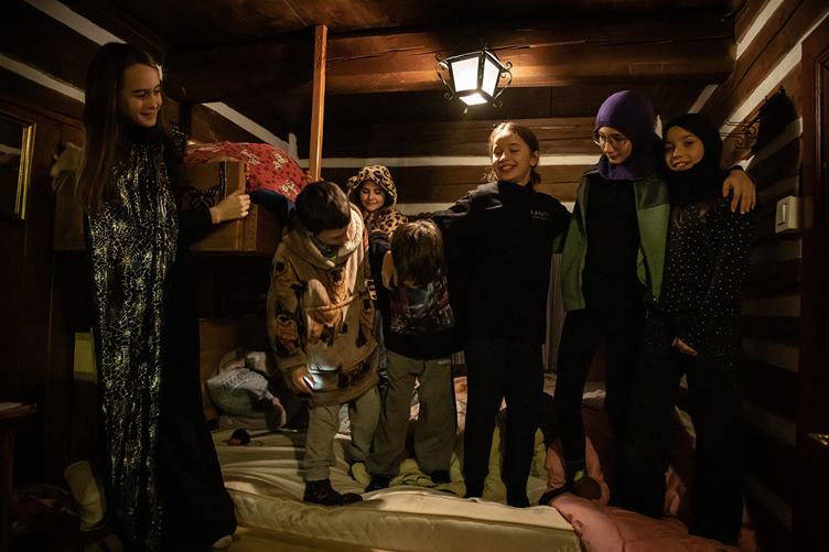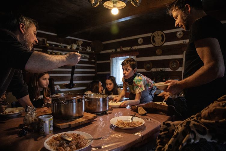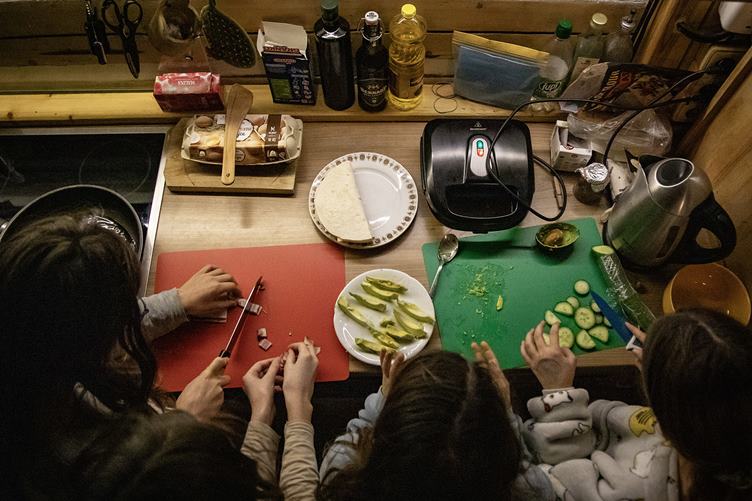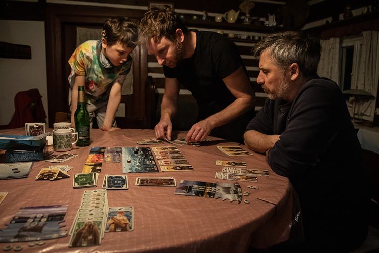 1. Holky si dělají snídani 2. Vejce nesmí nikdy chybět 3. Pak zkouší pod Filipovým dohledem Karak II 4. Masala od strejdy Fomase je tak dobrá, že se pro ní leze i na stůl 5. Poprvé jsem tuhle partu přinutil k deskovkám. Učím je Knarr 6. Jen to nádobí, kdyby se umylo samo 7. Děti pro nás zase nacvičily divadlo. 8. Někteří už odpadli 9. Já už jdu taky spát. V ložnici mi visí takovej obraz s divnym chlápkem