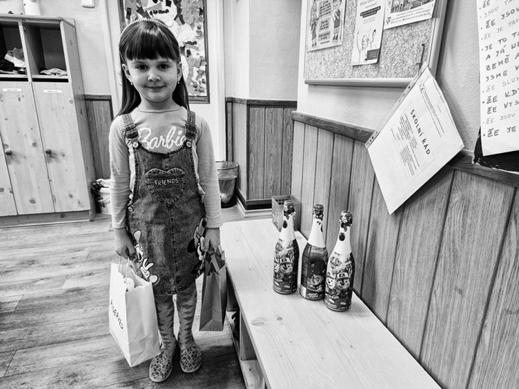 1. Zas se vzbudili oba ještě s mámou a tak se s nima oběma stihla rozloučit 2. Do školky dnes při příležitosti svých narozenin nesla Anežka malé balíčky pro spolužáky a dětský šampus na přípitek 3. Já se dopoledne pustil do stříhání našeho přerostlého rozmarýnu 4. Filípek nadšeně slaví každé dojezené jídlo 5. Já slavím každé kafe, které si dám v klidu 6. Na místě, kde se přechází u školy, ale není tam přechod, dnes srazilo auto nějakého školáka 7. Chystali jsme s Anežkou balonky na její zítřejší oslavu a jeden jsme cvičně naschvál vypustili 8. Z nachystaných balonků byl Fili úplně štajf 9. Anežka chtěla své dnešní narozeniny symbolicky oslavit pizzou