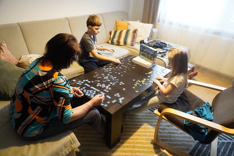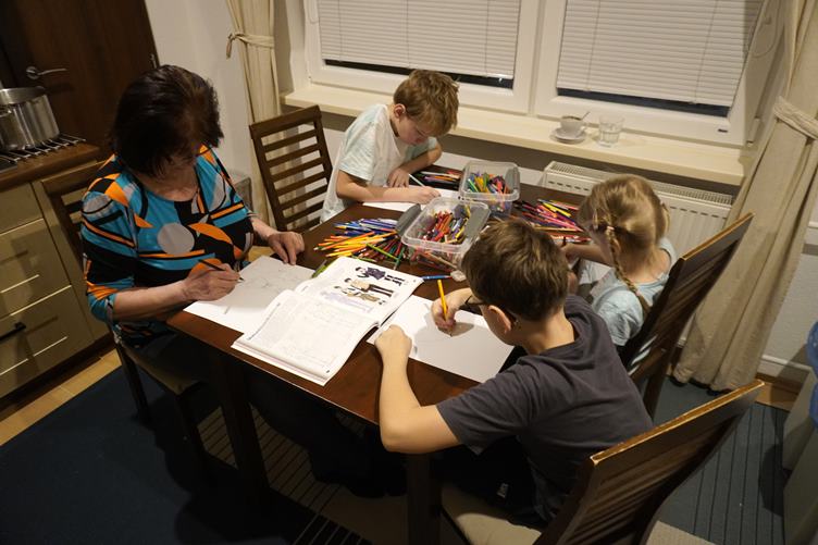 Na raňajky sme ochutnali paštéty. Dominika stále bolel hrudník a tak s ním Ľudka šla na pohotovosť. Samko sa učil viazať tenisky. Mamina u nás nakoniec prespala aj dnes.