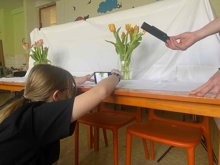 smoothie * mam čas - tak mi slnko robí odraz pred odchodom do práce * veľa vecí doobeda a poobede zasa tulipány a svetlo * deti tvoria krásne obrazy * a moje tulipány s filtrom * tanečníci (prvá skupina) majú záverečnú * doma vyfarbujeme * a musím jej s tým pomôcť - vraj je to veľké * a večer skúšam highkey