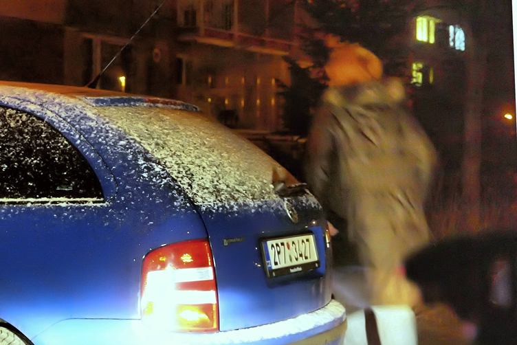 Zbraslav, Barrandov, Chodov, Nusle, Barrandov, Zbraslav. Tma, zima, sníh.