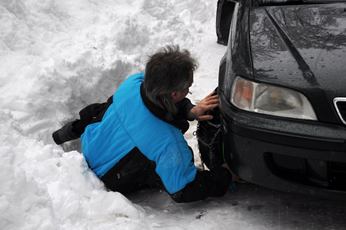 Piata farba dúhy - modrá 1.Ráno sme museli dať reťaze, lebo by sme asi nevyšli na Kohútku 2.No, bez lístkov sa ťažko jazdí na vlekoch :-) 3.Eše pozrieť mapu aby sme vedeli kadiaľ jazdiť 4. Skontrólovať horskú službu 5. a môžeme vyraziť na slalom :-) 6. No, do kopca nám to ide jak v lete na sánkach :-) 7. Ale tu má niekto o odvoz postarané 8. No a pomaly aj domov. 9. Ešte sa rozlúčiť so snehom a môžeme vyraziť