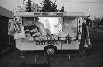 ranní sprcha ... něco na sebe ... jako každý den ... "di s tim foťákem do prdele, debile" ... tohle mi jednou spadne na hlavu ... vycpávka, abych měl 9 fotek ... a ještě jedna (i když, pokud tento server pár desítek let vydrží, bude to možná zajímavá fotka) ... konečně mám příležitost vyfotit si tento karavan kousek od práce ... navečer mám ještě něco v centru a už od víkendu uvažuju, že bych to spojil se shlédnutím Antikrista, nakonec se ale rozhoduju, že si nebudu narušovat relativní psychickou pohodu a tak alespoň fotka dresu mého oblíbeného fotbalisty