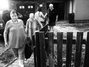 1. S lidmi z podporovaného obydlení jedeme na výlet do ostravské ZOO. 2. Ostrava dýchá. 3. Zdeněk dýchá Chesterfieldku. 4. Plameňáci. 5. Letmá úvaha na téma z Baudelaira. 6. Sloní mládě jsem nezastihl, jen rodiče. 7. Barborka s Marcelkou, často se zastavujeme na lavičkách. 8. Zdeněk a Boženka. 9. Čekáme na bus domů.