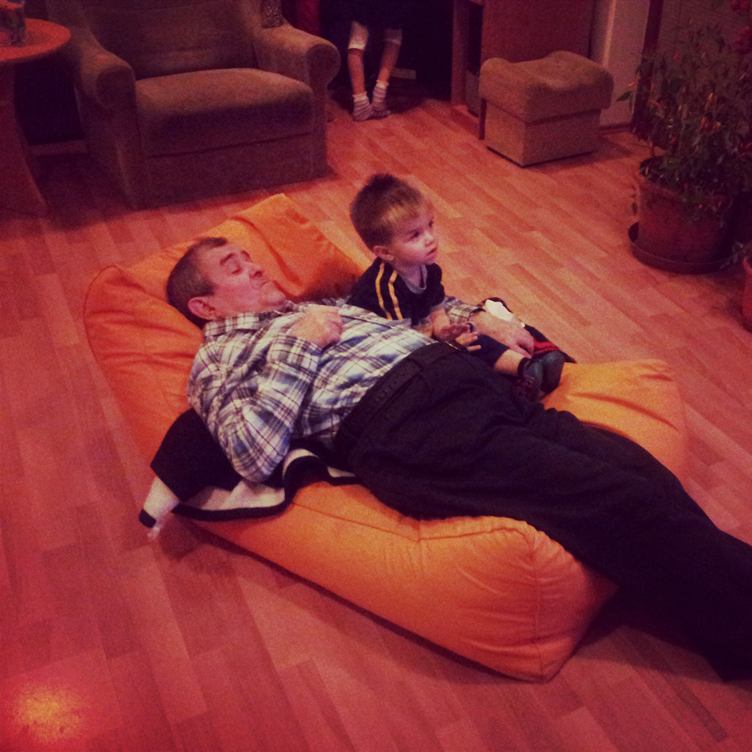 Dnešek mi přišel extrémně studený, ale co se dá dělat, ven musíme :) Cesta an Šumavu. Děda mi ukazuje novou košili, co má oc dlouhé rukávy. Eli slaví 8. narozeniny a ukazuje mi čajovou soupravu pro panenky (ale prý z toho budeme pít my). Děda s Fanouškem koukají na Šmouly. Náš strom na zahradě :)