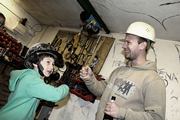 Lahev vína se dá otevřít různě.. Ráno je nehezky. Odpoledne se ke garáži musím znovu vrátit, tady už se opět pracuje, jak naznačují opravu potřebující auta. Předešlý večer jsem dostal od sestry dodatečně triko k svátku: