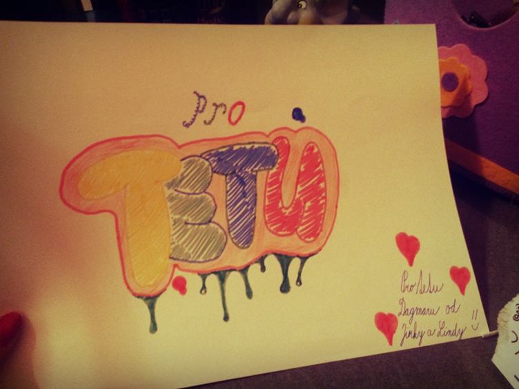 Ráno mě překvapila objížďka 125ky, ale do práce jsem to stihla...v Letňanech po práci sháním dárečky pro děti, čekám na odvoz a v šest už vyrážíme do Karviné...ve 22:30 už mě děti, které kvůli mě nešli spát, vítají obrázkem :) Miluju je :* A karvinský víkend pokračuje dalším týdnem...;)