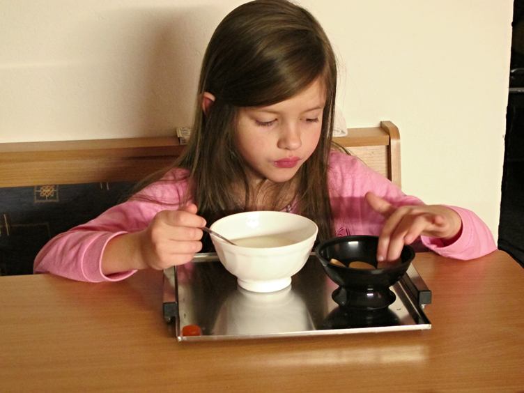 Olča jela ráno brzo, tak já vypravuju Andy do školy - snídaně, škola naproti zámku.. Doma nakládám buřtíky, odpoledne s Andy nakrmíme ptáčky, Olča dovezla večeři, dělá svačiny na zítra, rozšíření paměti :-)