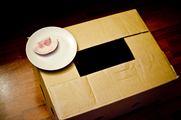 Místo stolku aspoň krabice. Je nachystáno a jde se na to. Oběd už na domku. Ještě jedna otočka na bytě. Já pak jedu k babičce pozdravit Bobánka a vyzvednout oběd na zítra. Babička tento víkend dělá hlídačku a provianťáka. Babi díky ;-) První večer u nás doma:) Šampáňo a malinká oslava:)