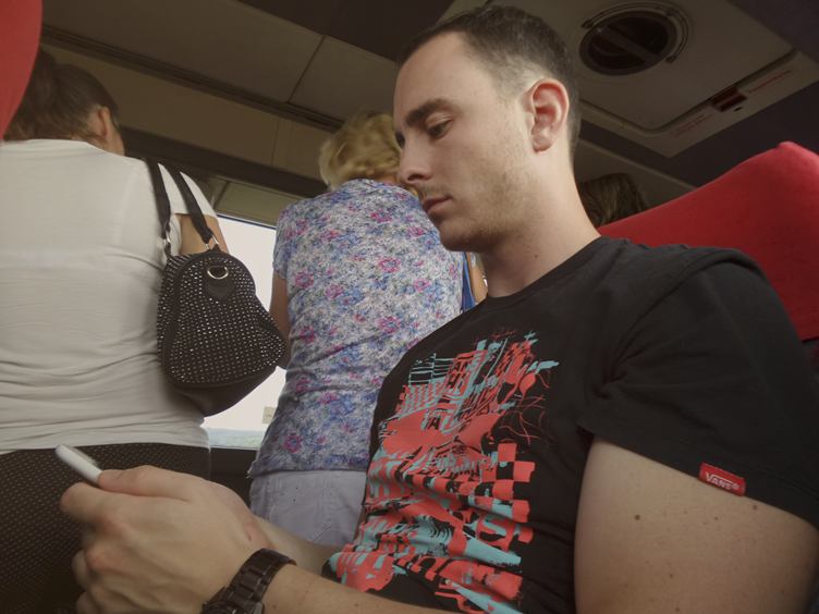 Kočičák v sedmém nebi. Prší. Natrhala jsem si rajčátka. Jedu busem do Prahy s Lindym. Cesta psycho- s tímhle dopravcem už nikdy, lidi stojí i v uličce. Konečně doma.