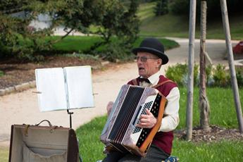 Jedeme na výlet.... jsme v Luhačovicích... na promenádě se hraje... kluci s dědou, je tam v lázních... sledujeme loutkové představení.... lázeňský dům... děda ale nepije Vincentku... samozřejmě jsme tam s kočárkem... jééé takovou jsem dlouho neviděla...