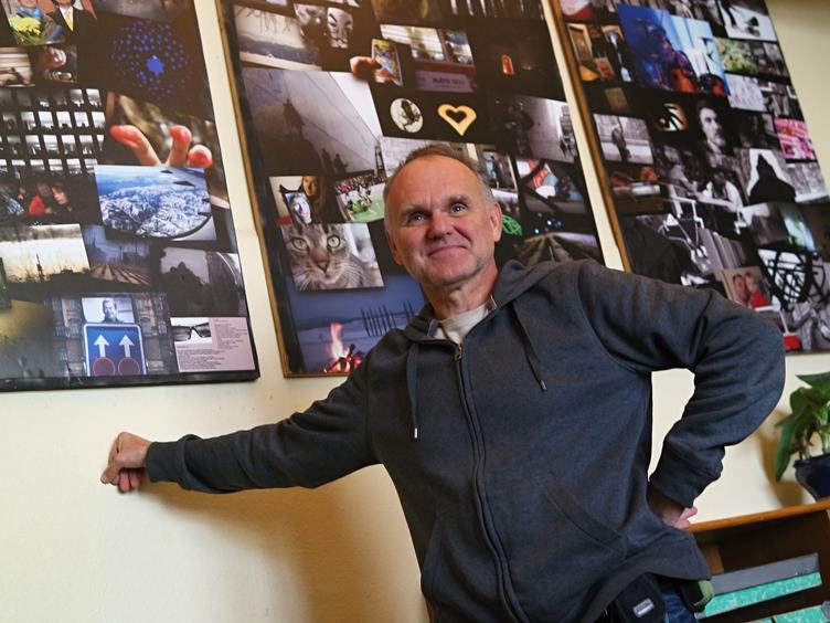 Ve 4:00 sbíhám po schodech dolů … a vlak jede krajinou … v Praze mám čas a tak jdu do kanceláře pěšky … zjišťuji, že to je rychlejší než metrem … kolem Lucerny a přes náplavku … pak už se nějak k focení nedostanu, zato si to vynahradím odpoledne, když navštívím Romka v Unijazzu, je tam aktuálně vystavený jeho