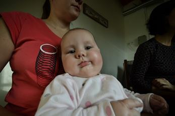 Adinka s náma snídá ... Dan a kafe ... Adinka slintá ... Roxy si to užívá ... Vyrážíme se projít ... A zcela náhodou jsme svědky Janovské 11 a 19 ... Tak trochu fotím ... Houby na kmeni ... A keř před chatou.