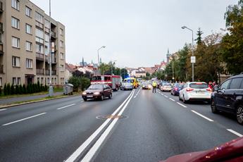 Je tu pátek a k tomu sluníčko! Výhled z firemní terasy. Bouračka v Klatovech. Všichni ji sledují z oken. Další auto skoro naplněno. Kohout u topení v koupelně je předělaný. Mamka koupila zákusky. Jája doma balí a já jsem vyrazil na jedno.