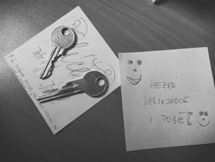 V pondělí za mě i za Petra bude hodně suplování v tělocvičně, tak půjčujeme klíče. Slyším od počítače, jak Tomajda přezouvá pneušky. Před kruháčem tekutá svačina a pak zamakat na supersiláka. Mám sbaleno. Vínko a pohodička.