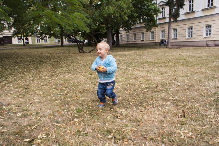 Ráno si Týnka maluje - ale protože potřebuje přece jen pohyb, začne si tancovat a zpívat Červený šátečku - po obědě převléknout - a jedeme o Teplic, kde opět začínáme tvořením, nejdříve razítkují kabelku - pak si maluje magnetek na lednici - a dá už to Olíka nebaví - takže ho musím honit po louce - než se zasekne u zídky u silnice - "Živé Teplice" jsou skutečně živé a těch žonglujících lidí, co se tu potuluje :-)
