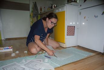 Dopoledne vaříme polívku a zatímco si já hraju s celerem - Týnka strouhá zbytek zeleniny - a Oldík čučí z okna - odpoledne venku prší - lidi se snaží nezmoknout - a děti řádí doma - a řádí i večer - když konečně usnou Vlaďka stříhá látku Oldíkovi na kalhoty - a já jsem omylem smazal nějaký fotky, tak se pokouším vydolovat použitelný obrázek z dnešních fotek z mobilu, kterých taky není moc