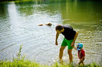 Kluci mají nové obaly na očkovací průkazy. Holky mi pomáhají na zahrádce:) Pak jdeme k rybníku a Andulka má radost, že se může vykoupat. Pak zaleze do zákopu a spí:)