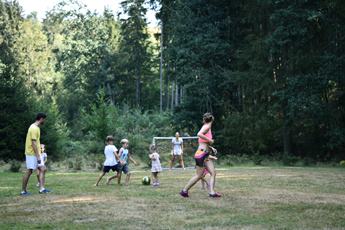 Fotíme bubliny ... A foukání bublin ... Adinka na houpačce se xychtí ... Fotbal s dětmi ... Společná jídelna venku ... Odpoledne příprava na vodní bitvu ... A hotovo ... Během pár minut konec ... Noční obloha a déšť.