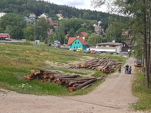 Výlet - konečně pěkné počasí. Vlakem do Křižan, po žluté do Horních Pasek, na Pláně a do Liberce, asi 12 km. V Hanychove novy spravce lyžařského areálu pokacel pekny kus lesa:-(
