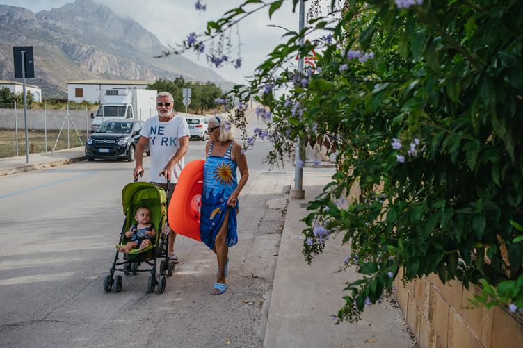 Marínka si větrá nožky. Jedeme zpátky do San Vita za babičkama a dědečkama. Marínka si chrupla a pak jdem na pláž. Večer zase vyrážíme na drink.
