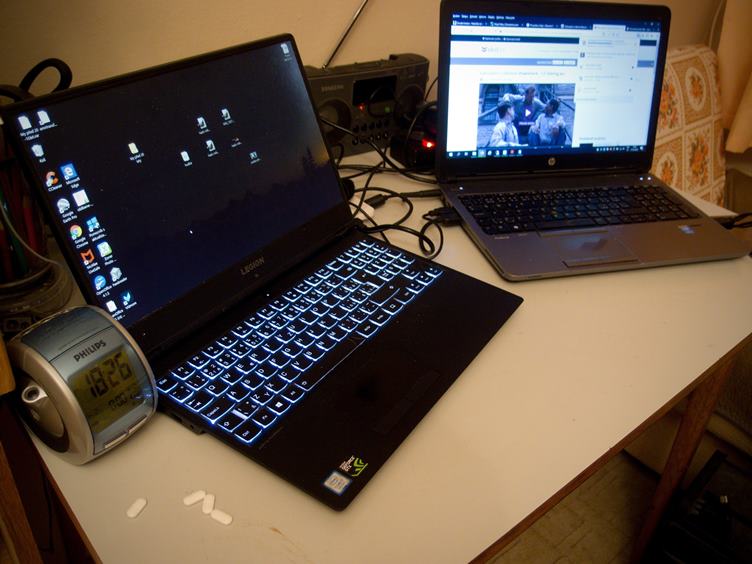 Den přede mnou... Polena... Kočka... Babička s námi... Kočka... Krmítko u sousedů... Křeslo... Počítačové zátiší... Stejný film v notebooku a televizi - terestrický přenos rychlejší...