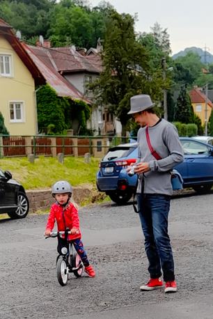 Ráno odchazím a Tery mě doprovází se rozloučit. I když má prázdniny, tak straší brzo. Když jdou s Oldíkem ven, tak se kolem mé práce staví za mnou pro pusinku. Po práci zasloužená odměna a chvilka klidu. A pak zase véča a spinkat.